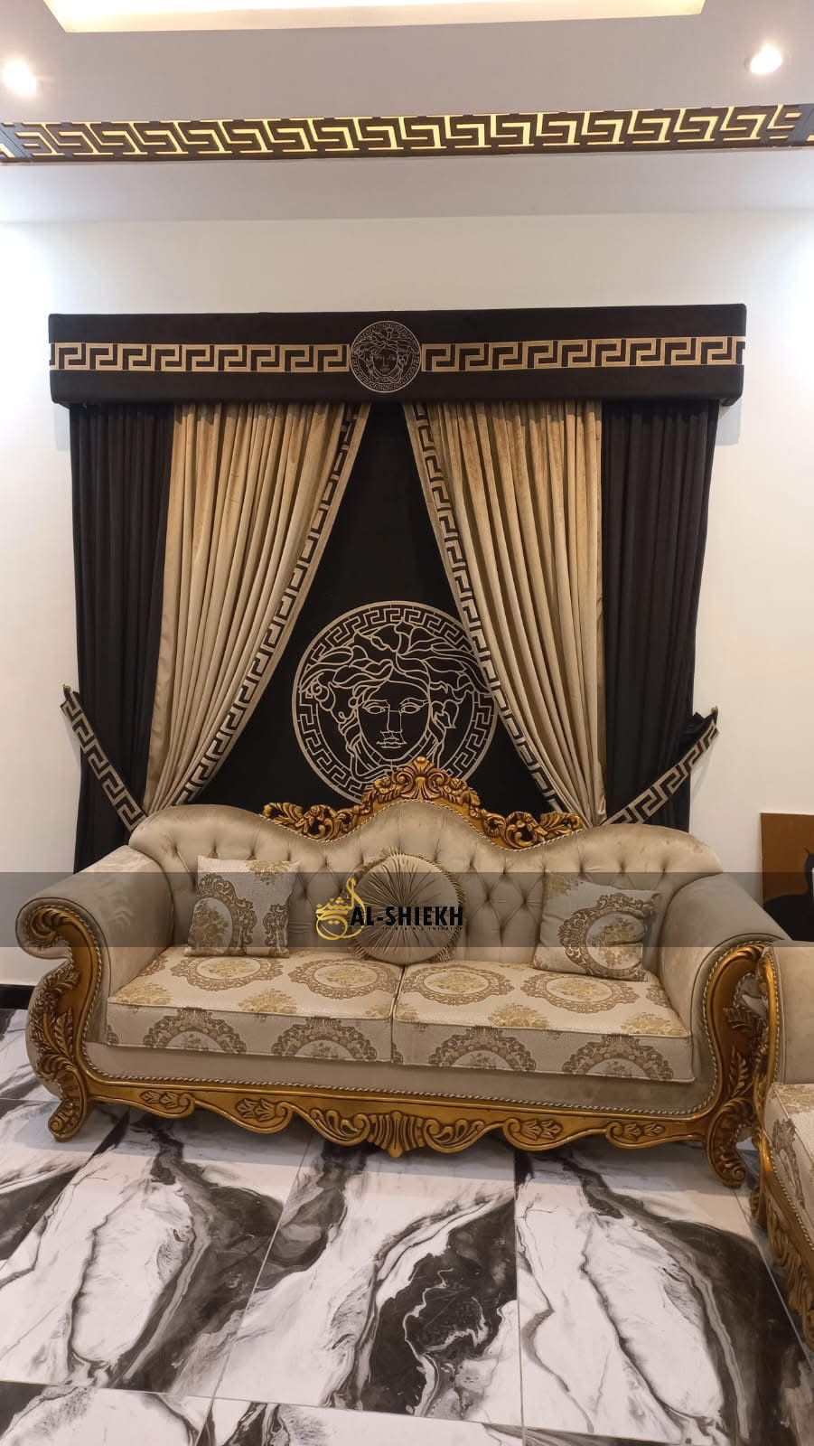 Printed Curtain Box & Border: Enhances structure with designer flair.